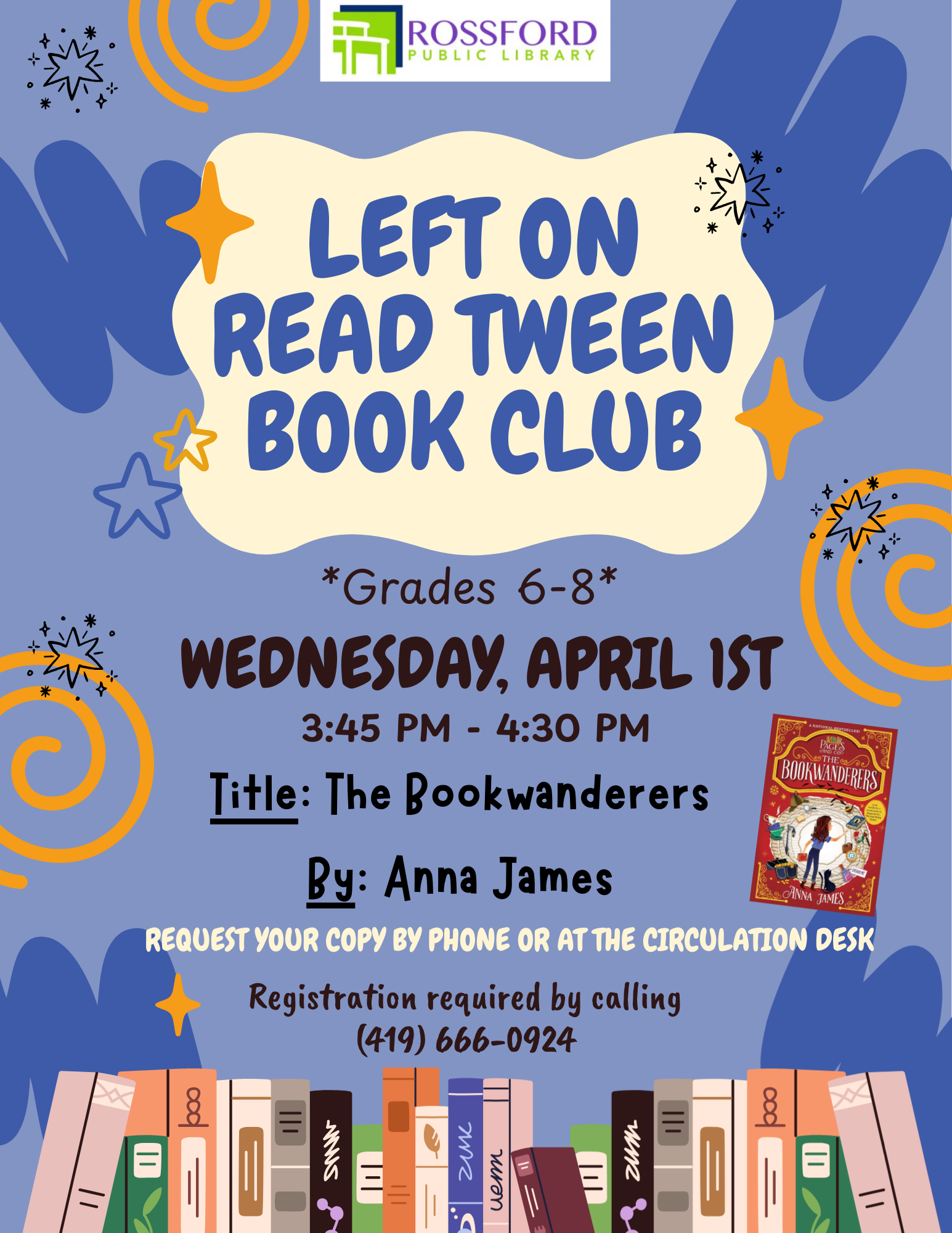Join us for our Spring Storytime session beginning March 16th - April 29th. We've added another session on Tuesdays at noon! Storytime (4-6 year olds) Monday evenings at 6pm March 16th - April 27th Storytime (4-6 year olds) Tuesday afternoons at 12pm March 17th - April 28th 1-2-3 Read! (1-3 year olds) Tuesday evenings at 6pm March 17th - April 28th 1-2-3 Read! (1-3 year olds) Wednesday mornings at 10am March 18th - April 29th Registration is required by calling 419-666-0924. |